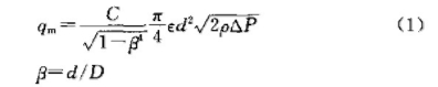 式中:qm為質(zhì)量流量,kg/s;C為流出系數(shù);D為管道內(nèi)徑,m;ε為節(jié)流件正端取壓口平面上的氣體膨脹系數(shù);d為工作條件下節(jié)流件的開孔直徑,m;ρ為節(jié)流件人口端流體密度,kg/m³.