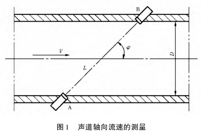 式中:tu為超聲波在流體中逆流(由B到A)傳播的時(shí)間,s;td為超聲波在流體中順流(由A到B)傳播的時(shí)間,s;L為聲道長(zhǎng)度,m;V為流體的軸向線平均流速,m/s;0為聲道角,(°)。