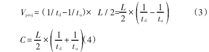 td=L/(C+Vproj)(2)