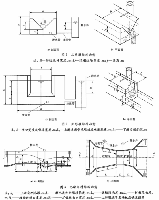 因篇幅有限,文中僅介紹三角堰、矩形堰及巴歇爾槽的測量原理及計(jì)算公式。