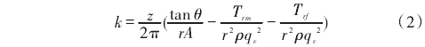 式中:z表示葉片數(shù);θ表示葉片傾角;r表示葉輪半徑;A表示過流面積;ρ表示液體密度;qv表示瞬時(shí)體積流量;Tm表示摩擦力矩;Trf表示流動(dòng)阻力矩。