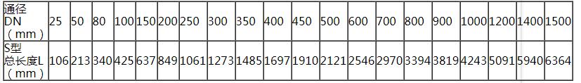 S型彎徑比1.5傳感器長(zhǎng)度表